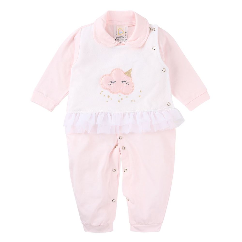 Macacao Longo Din Don Bordado De Nuvem Com Babado Em Tule Menina Brascol