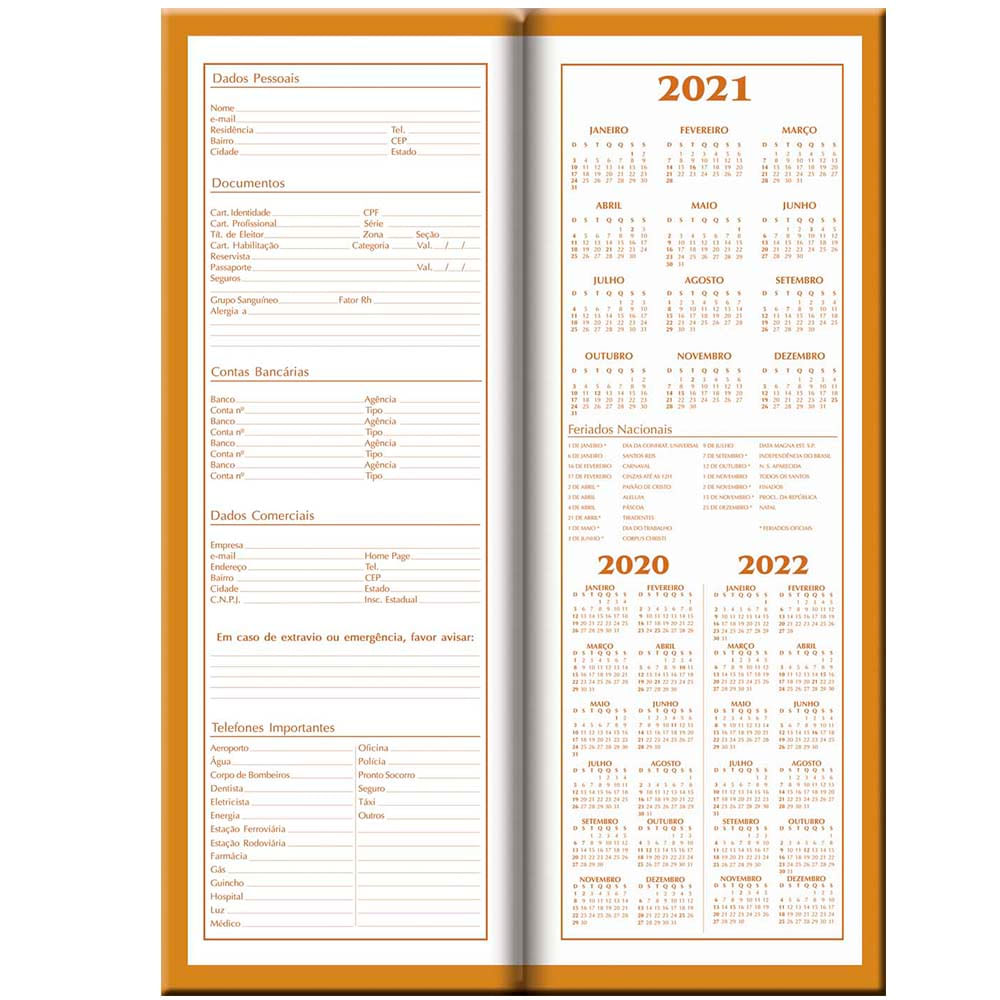 Agenda 21 Comercial com Horários Para você que precisa de mais espaço para seus agendamentos, esta agenda padrão comercial é ideal para você Possui um dia por página com horários (exceto sábados e domingos) Caso deseje incluir o seu logotipo na capa, por favor nos envie um email solicitando informações para alohaarteepapel. Capa dura, sem espiral;. Agenda 21 Diária Estampas Diversos Modelos Capa dura Com Baixo Relevo Miolo Diário com 336 páginas Um dia por página , exceto Sábado e Domingo Com tabelas, índice telefônico, informações diversas, calendários de planejamento 21 e 22 Disponível em papel offset 60g/m²Medida da Agenda 14,5 x cm.