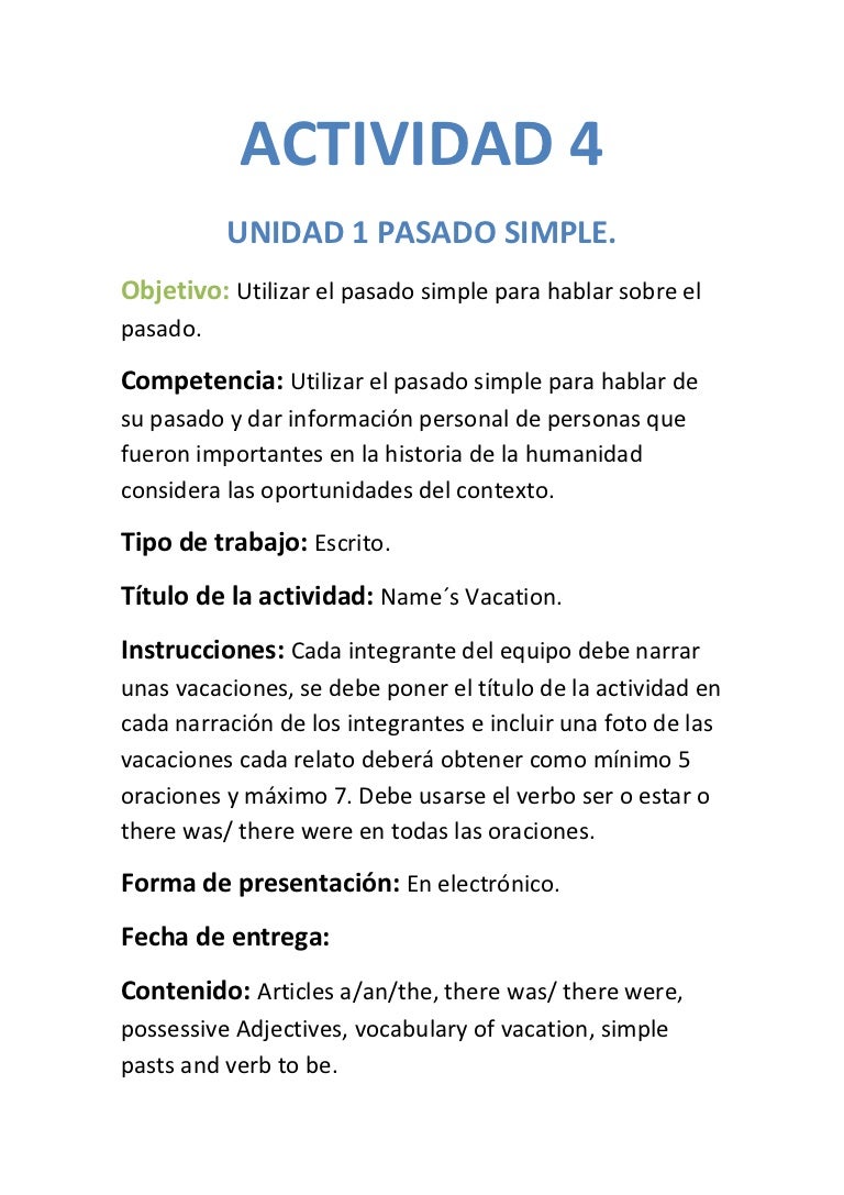Ejemplo De Vacaciones En Pasado Simple Ejemplo Sencillo