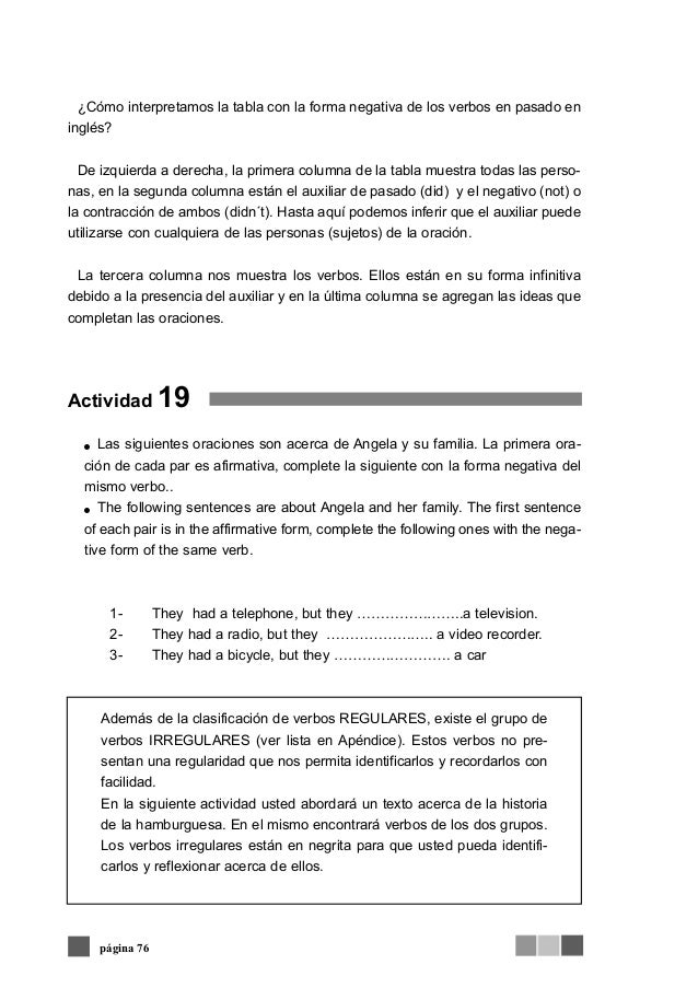 En conclusión Pues, parece que he pasado el verano con lo de siempre escribir, leer, comer, hacer deporte y dar largos paseos En fin mi vida Espero que te haya gustado este pequeño texto Y tengo más mi vida madrileña, uno en presente simple, y uno que usa muchos verb patterns Y si no me estás siguiendo en Facebook, ¡hazlo!. Aesop's Fables Cuentos cortos para aprender inglés en forma divertida a través de Internet English Short Stories to learn English free Recursos para estudiantes de inglés de todos los niveles, profesores y traductores They are simple short stories that will help you learn new English words and expressions. 29ene19 Con este vídeo aprenderás a hacer oraciones negativas usando el Pasado Simple en inglés, y también aprenderás el uso correcto del auxiliar DID.
